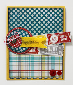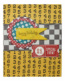 The other card was for my brother-in-law. I realized I should have used a plain circle punch instead of the scallop one so it would be more "manly" :). Oh well, I'm sure he appreciated it and it is probably just me thinking this. I stamped the card stock with the number stamp from this month's stamp add-on to create the background.