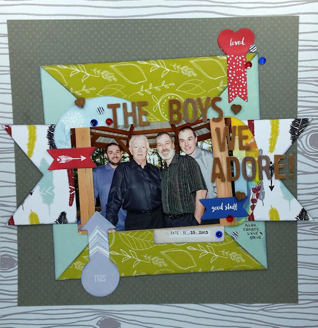 "This layout is all Fancy Pants Attwell collection. I love the masculine type of colors and patterns that make up the paper in the Patterned Paper Add-On Kit. I started with the 12x12 wood grain paper and decided to layer on this grey piece of cardstock (from my stash). Since I also wanted to use some of the other side of the wood grain paper I cut out the middle section that would then be covered up with the cardstock. This is a great way to get more use from your paper! I then layered on pieces of the other sheet (both sides). Right under and on top of the photo I added various Attwell sticky notes. I finished off the page with the title, wood heart and sequins that all came from my stash. These sticky notes that are a part of the Project Life Kit for May/June include so many sticky notes that I know they will be in many projects to come!"