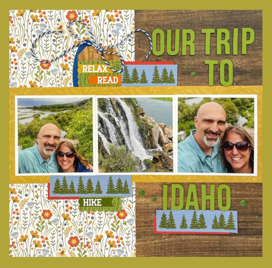 "I may not have had any camping photos to go with this kit but I did have some hiking ones! That required me to get a little creative with embellishments! I layered A LOT and use border strips as embellishment elements."